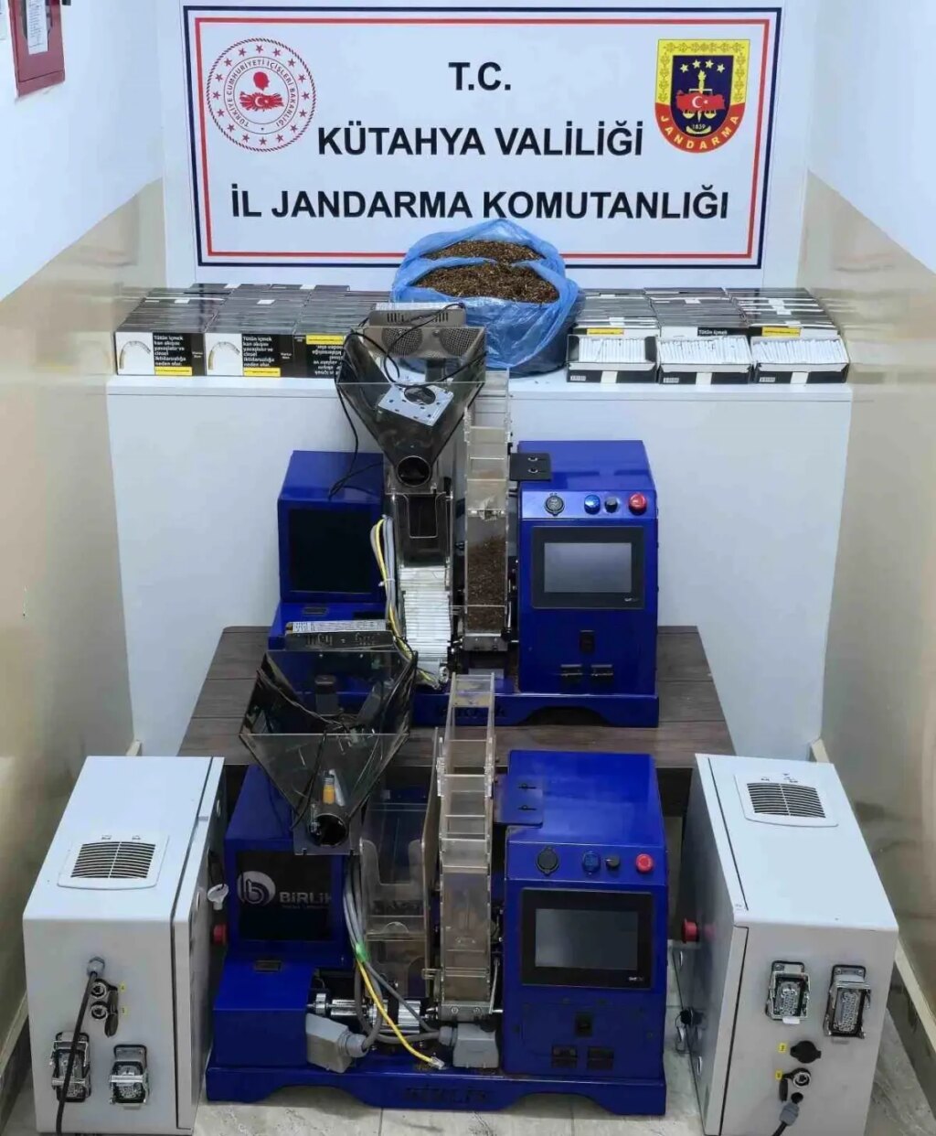 Kütahya Vilayet Jandarma Komutanlığı unsurlarınca vilayet genelinde kaçakçılık hataları ile çaba kapsamında yapılan çalışmalar sonucunda, Kütahya Merkez ilçesinde icra edilen operasyonda, 4 bin 800 adet içi doldurulmuş bandrolsüz makaron, 5 bin 200 adet içi boş bandrolsüz makaron, 5 kilogram kıyılmış tütün ve 2 adet elektrikli otomatik sigara sarma makinası ele geçirildi.