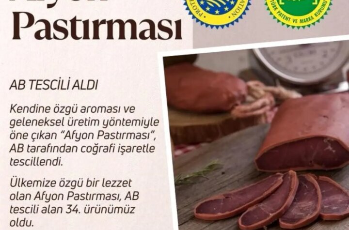 Tarım ve Orman Bakanı İbrahim Yumaklı, Afyon Pastırması’nın Avrupa Birliği'nden coğrafik işaret tescili aldığını...